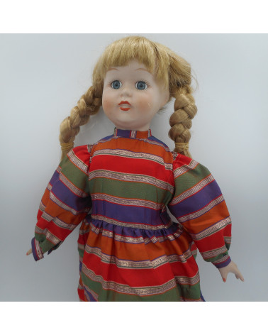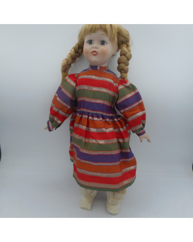 Poupée en porcelaine Prix 10,00 € Poupée de collection en porcelaine habillée d'une robe rouge à carreaux Vendue en bon état Hauteur: 37cm