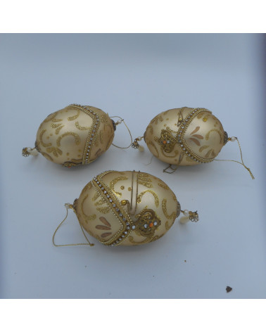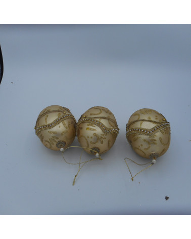 Lot de 6 boules Prix 1,00 € Lot de 6 boules en plastique avec motif (différentes couleurs 2 or/ 2 argent/ 1 rouge/ 1 vert) Des traces d'usure peuvent être présentes...