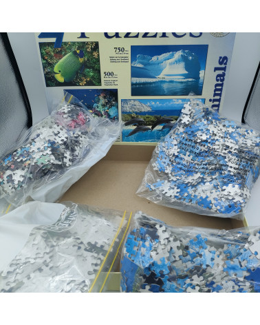 Ensemble de 4 puzzles sur le thème Marin. Produit complet, contient 2 puzzles de 500 pièces, 1 de 750 pièces ainsi de 1 de 1000 pièces.